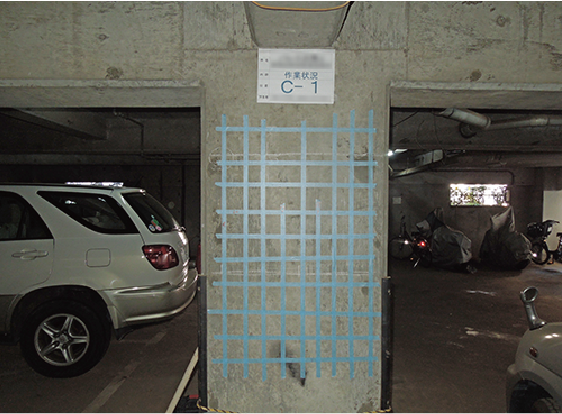 耐震診断調査における配筋間隔、かぶり厚さの確認